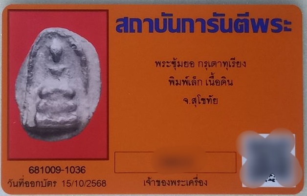พระซุ้มยอ กรุเตาทุเรียง จ.สุโขทัย จัดเป็นพระพิมพ์ยอดนิยมของเมืองสุโขทัย อาณาจักรสุโขทัยและกำแพงเพชรอยู่คาบเกี่ยวกันช่วงเวลาสร้างพระและศิลปวัฒนธรรมก็เช่นเดียวกัน องค์นี้เป็นพิมพ์เล็กทรงขนมเปี๊ยะ จัดว่าหายากครับ ถึงกับหายากมากแม้กระทั่งเพจนี้ที่มีพระแท้ลงให้ชมจำนวนมากก็ยังหาพระซุ้มยอเนื้อดินแท้ๆได้น้อยกว่าเนื้อชินหรือพระสุโขทัยพิมพ์อื่นๆ องค์นีพระสภาพสวย น่ารัก มีตา พระเต็มฟอร์ม พระเนื้อเขียว เผาแก่ไฟ(ใช้เวลาเผาดินนานหรือความร้อนสูง) นิยม พระผิวเดิมๆ รายละเอียดของพระคม ชัด ลึก พระหนา แข็งแรง สภาพสมบูรณ์ กำลังน่าใช้น่าบูชา