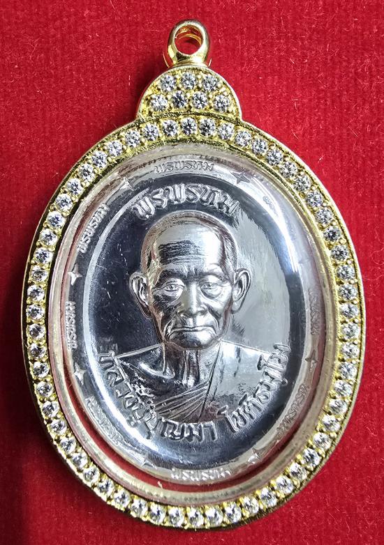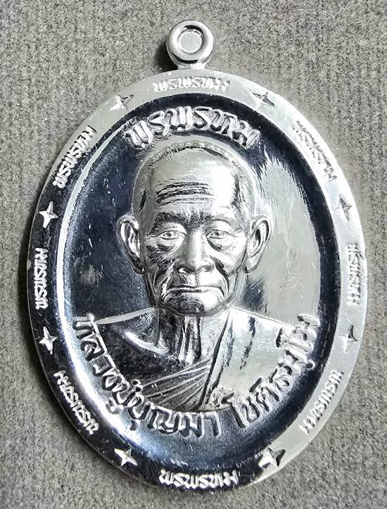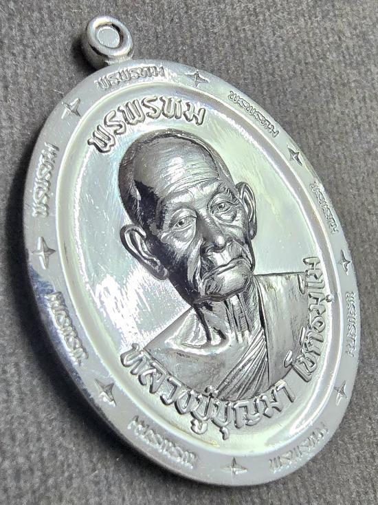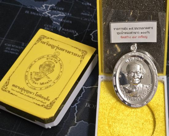 เหรียญ รุ่น"พรพรหม" หลวงปู่บูญมา โชติธัมโม วัดเขาแก้วทอง ปราจีนบุรี เนื้อชนวนมวลสารชุบน้ำทองคำขาว 100% หมายเลข ๕๒....พร้อมกล่อง (ไม่รวมกรอบนะครับ)