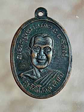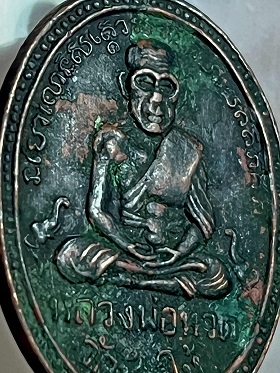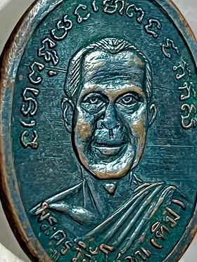 เหรียญลป.ทวด วัดเอี่ยมวรนุช ปี 2506 เนื้อทองแดงรมดำ สภาพตั้งหิ้ง ด้านหน้ามีคราบ ด้านหลังสวย