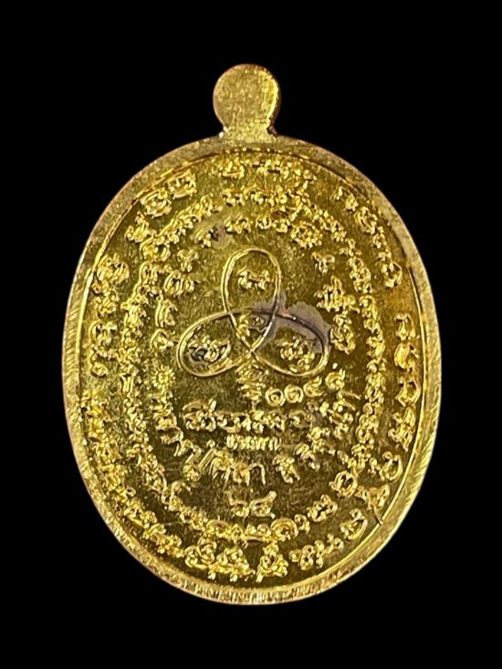 เหรียญปรกไตรมาส (เหรียญแจกทาน) รุ่นเศรษฐีรวยปาฏิหารย์ 77 หลวงปู่มหาศิลา สิริจันโท สวนสงฆ์แกเปะ จ.กาฬสินธุ์ เนื้อทองทิพย์ลงยาสีส้ม (หายากมาก) หมายเลข 1148