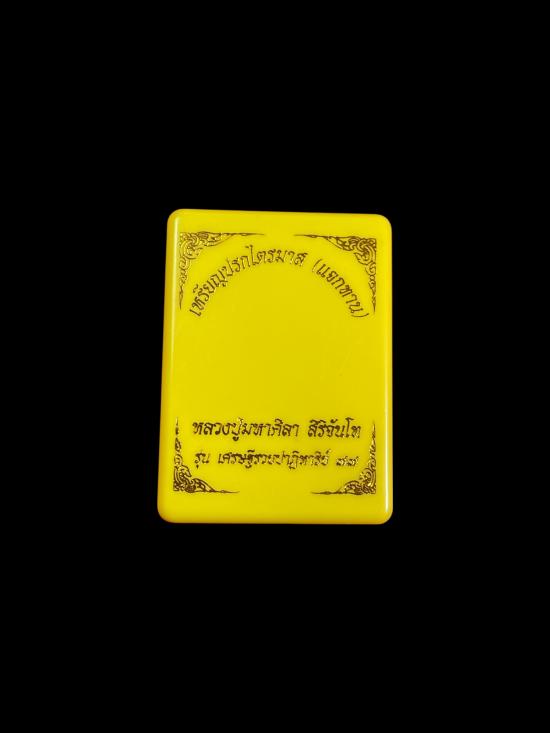 รายละเอียด เหรียญปรกไตรมาส (เหรียญแจกทาน) รุ่นเศรษฐีรวยปาฏิหารย์ 77 หลวงปู่มหาศิลา สิริจันโท สวนสงฆ์แกเปะ จ.กาฬสินธุ์ เนื้อทองทิพย์ลงยาสีส้ม (หายากมาก) หมายเลข 1148
