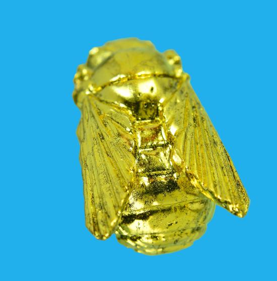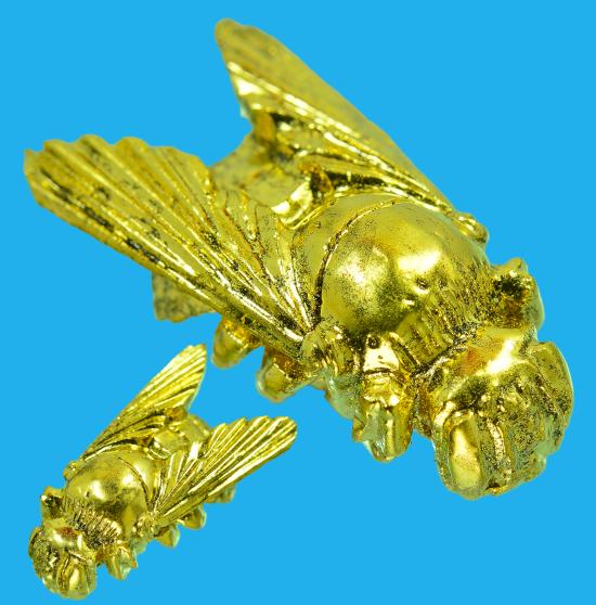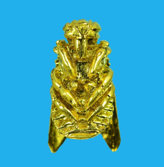 แมลงภู่คำ เนื้อไม้ดุมล้อ ในตัวมีปรอท ลงรักปิดทอง ขนาด ๑ นิ้ว หลานชายผู้เฒ่าลายไสย