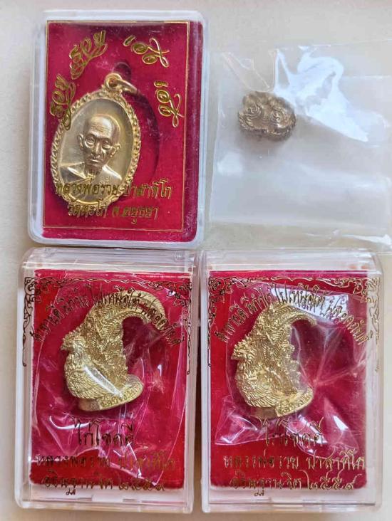 เหรียญรวยๆเฮงๆหลวงพ่อรวยวัดตะโกแถมด้วยไก่โชคดีเนื้อทองทิพย์2ตน+สิงห์จิ๋วหลวงพ่อเพี้ยนวัดเกริ่นกฐินเคาะเดียวแดง |