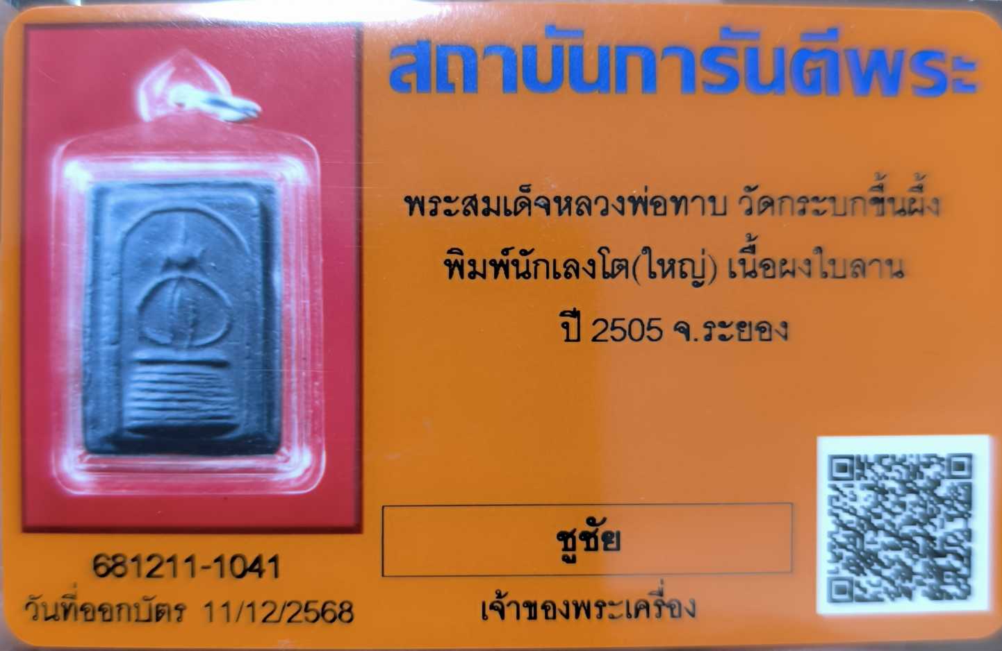 ชื่อพระเครื่อง พระสมเด็จหลวงพ่อทาบ พิมพ์นักเลงโต(ใหญ่) พร้อมบัตรการันตีพระ