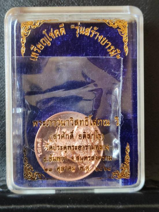 เหรียญโชคดี พระมหาสุรศักดิ์ วัดประดู่พระอารามหลวง อัมพวา เนื้อทองแดง