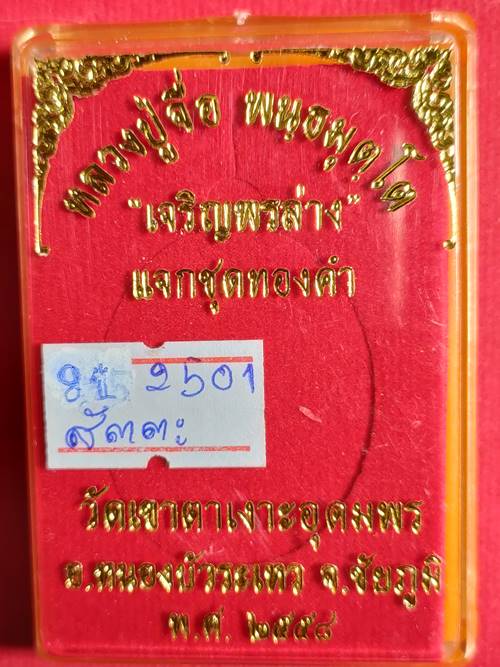 เหรียญหลวงปู่จื่อ พันธมุตโต รุ่น เจริญพรล่างออกวัดเขาตาเงาะอุดมพร จ.ชัยภูมิ ปี 58 เนื้อ สัตตะ หมายเลข 2501 สภาพสวย เคาะเดียวแดง