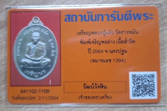 เหรียญเจริญพรล่าง หลวงปู่แผ้ว ปวโร ปี 64 เนื้อชนวน # 1394 พร้อมกล่องเดิมและบัตรGครับ