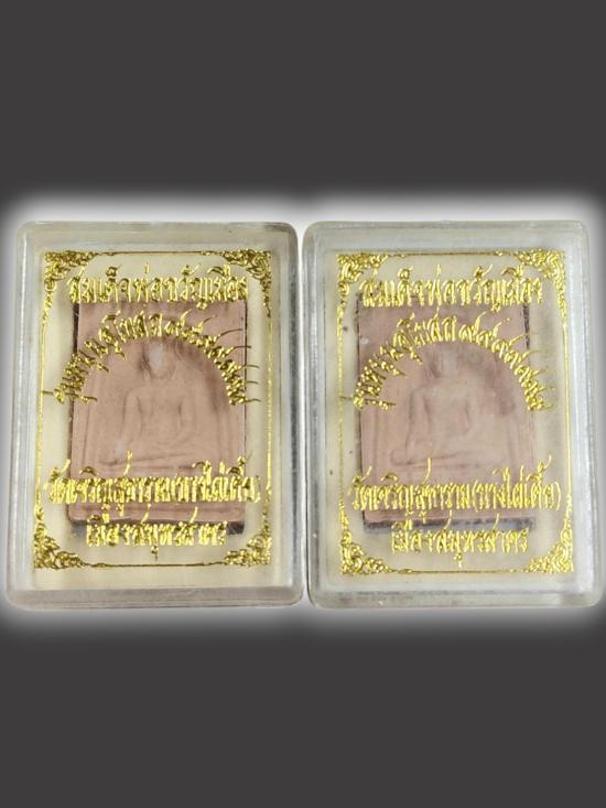 A5330.พระสมเด็จพ่อขวัญเมือง วัดเจริญสุขาราม (บางไผ่เตี้ย) พร้อมกล่องเดิม 2 องค์ เคาะเดียวเเดง
