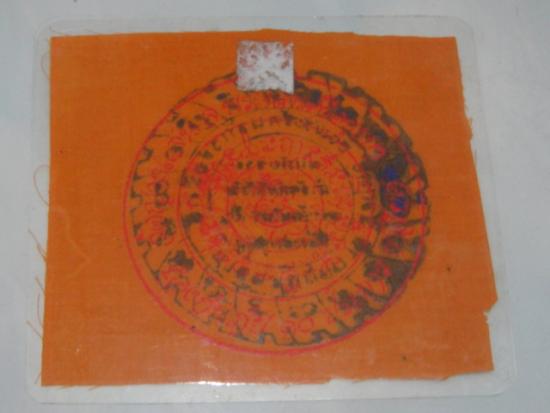 วัดใจเคาะเดียว.......100.......ผ้ายันต์จีวรพระรัตนจักรชัยสิทธิ์ กำจัดภัย กำจัดโรค หลวงปู่ชื้น พุทธสโร วัดญาณเสน อยุธยา ขนาดประมาณ 5.5 x 5 นิ้ว สวย เคลือบอย่างดี |