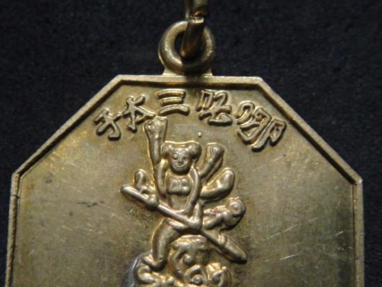 วัดใจเคาะเดียว.......200......เหรียญรุ่นแรก เทพเจ้าหล่าจาไท้จื้อ เทพเจ้านาจาซาไท้จื้อ ศาลเจ้าอ่างศิลา จ.ชลบุร ี ปี2536 เนื้อทองฝาบาตร