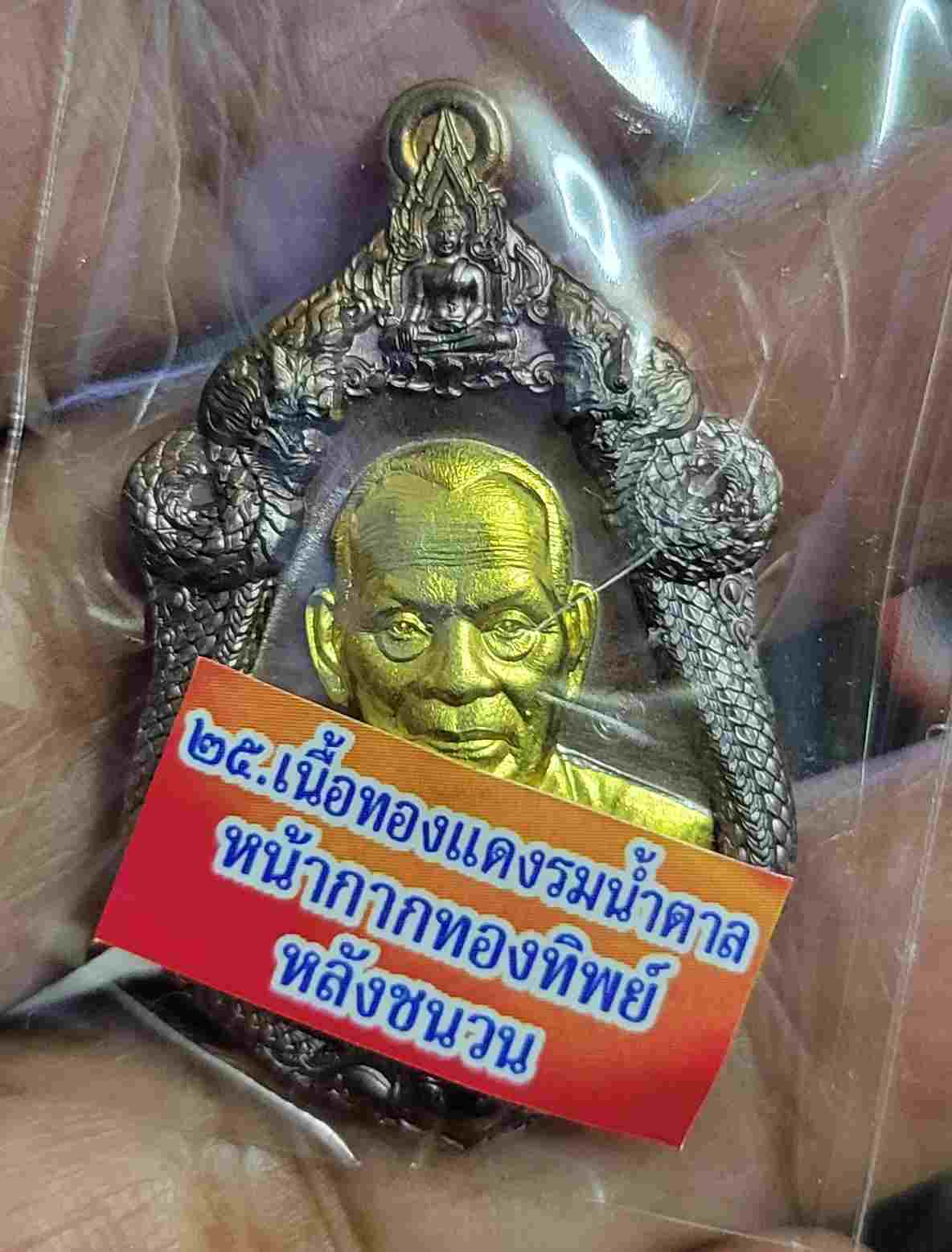 เคาะเดียวแดง เหรียญหลวงพ่อพัฒน์ รุ่นเจ้าสัวเจ้าคุณพัฒน์ บอยท่าพระจันทร์สร้าง ต้นฉบับเหรียญมีชีวิต เนื้อทองแดงรมน้ำตาลหน้ากากทองทิพย์หลังชนวน สภาพเดิม ซิลเดิม |