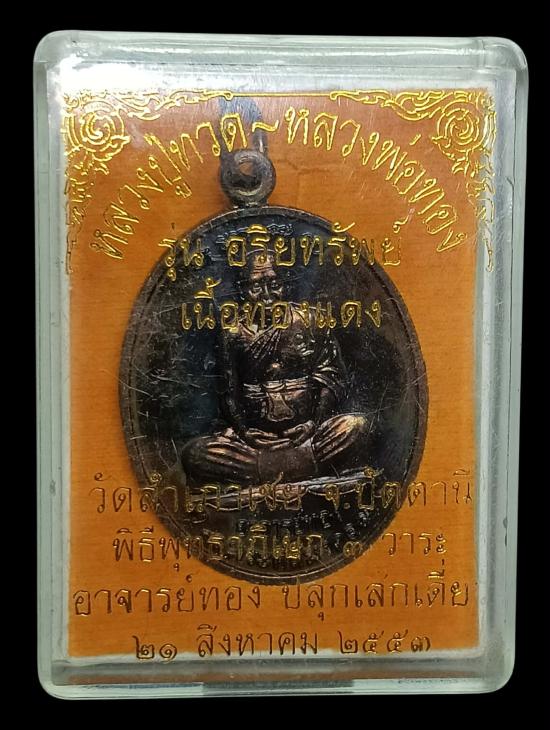 เหรียญหลวงปู่ทวด อาจารย์ทอง รุ่นอริยทรัพย์ วัดสำเภาเชย ปัตตานี ปี 2553 ตอกโค๊ด ตอกเลข ๘๒๙ ทองแดงผิวรุ้ง มีกล่อง สวยครับ