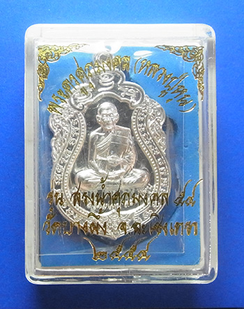 เหรียญสรงน้ำ หลวงปู่หุน วัดบางผึ้ง จ.ฉะเชิงเทรา ปี 2554 เนื้อเงิน สภาพออกจากวัด เก็บอย่างดี พร้อมกล่องเดิมครับ
