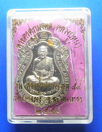 เหรียญสรงน้ำ หลวงปู่หุน วัดบางผึ้ง จ.ฉะเชิงเทรา ปี 2554 เนื้ออาปาก้า หลังเรียบ พร้อมจาร