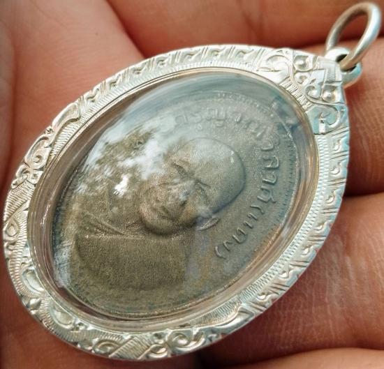 เหรียญหลวงพ่อแดง รุ่นแจกแม่ครัว บล็อก 7 หางยาว ปี 2509 เนื้ออัลปาก้า วัดเขาบันไดอิฐ เพชรบุรี พร้อมเลี่ยมเงิน