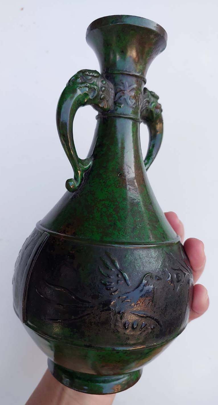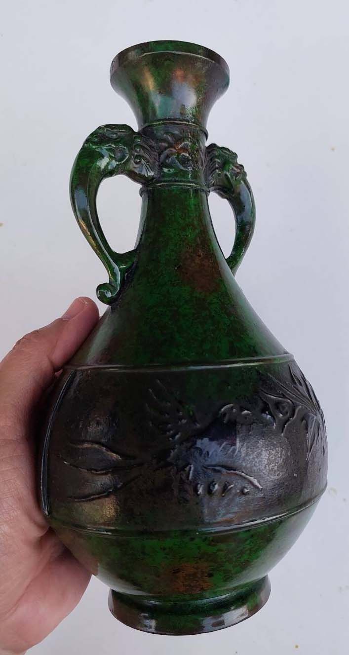 **วัดใจ***แจกันทองสัมฤทธิ์เก่าทรงโบราณ หูมังกร สูง 8.5 นิ้ว ปาก 2.5 นิ้ว
