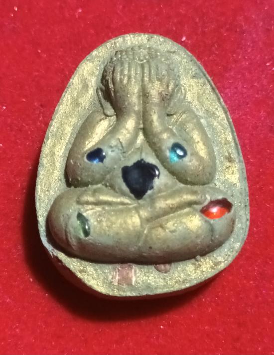 พระปิดตาจัมโบ้หลวงปู่บุญมา เนื้อว่านเขียว ฝังพลอย หลังฝังปรก No.1