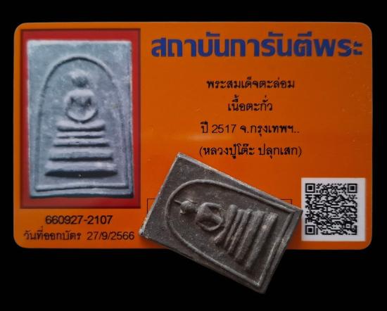 พระสมเด็จ เนื้อตะกั่วถ้ำชา ปี 2517 ออกวัดตะล่อม กทม. หลวงปู่โต๊ะ วัดประดู่ฉิมพลี ปลุกเสก มาพร้อมบัตรรับรองพระแท้การันตีพระ
