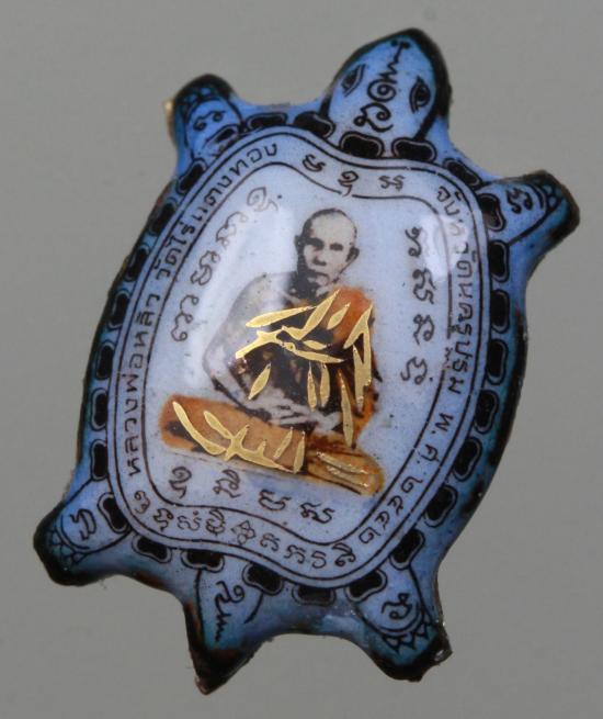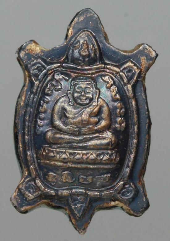 เคาะเดียวแดง ล็อกเก็ตพญาเต่าเรือน หลวงปู่หลิว รุ่นสำเร็จจิต พิมพ์จิ๋ว หลังเงิน พร้อมกล่อง