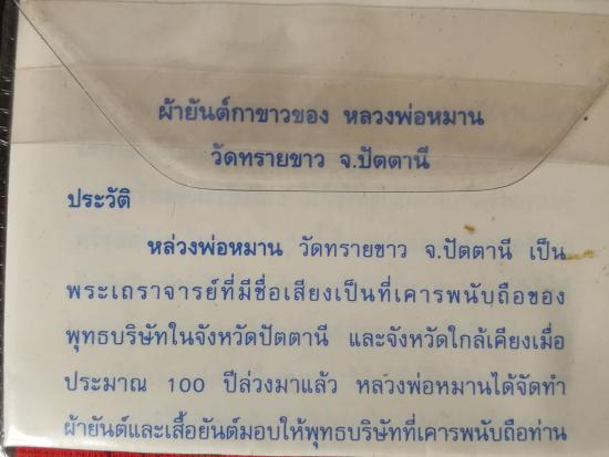 ผ้ายันต์กาขาว อาจารย์นอง สร้าง (ตำราหลวงพ่อหมาน) วัดทรายขาว จ.ปัตตานี พร้อมใบฝอย ซองเดิม