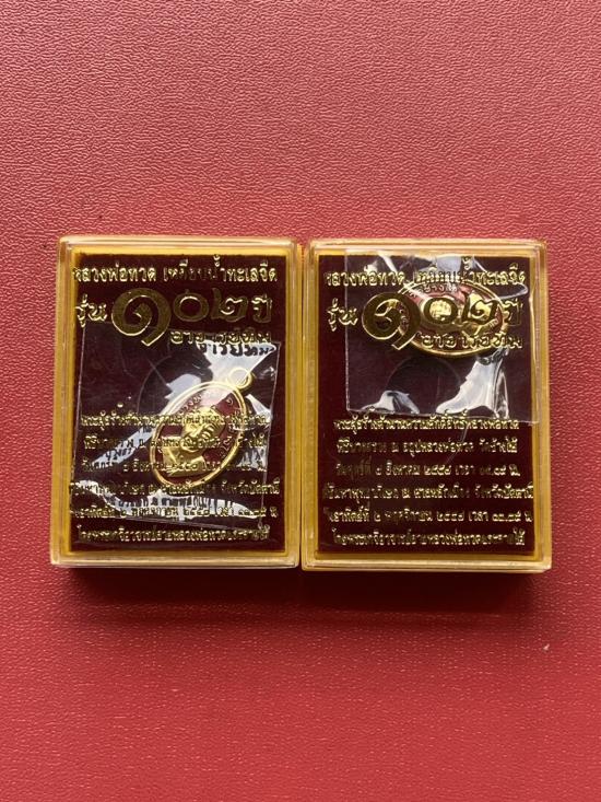 เคาะเดียวแดง เม็ดแตง 2องค์หลวงปู่ทวด รุ่น102ปี เนื้อ ชุบทองลงยาแดง