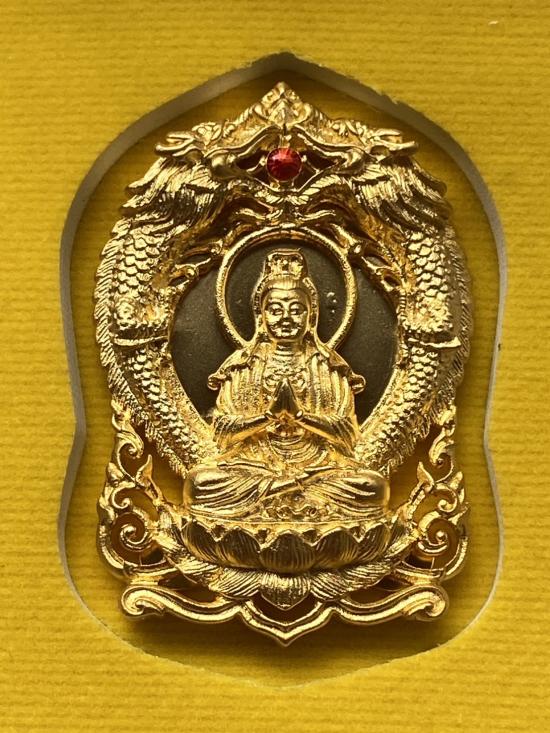 เคาะเดียวแดง เจ้าแม่กวนอิม รุ่น ทรงประทานพร เลข234 เนื้อ บรอนชุบทอง |