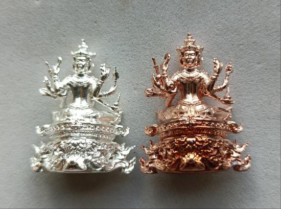 วัดใจเคาะเดียวแดงจ้า รูปหล่อพระพรหมอุดกริ่ง หลวงพ่อนพวรรณ พิมพ์เล็ก เนื้อบรอนซ์ชุบเงิน+บรอนซ์ชุบนาค จิวเวลรี่ เคาะเดียวแดงจ้า |