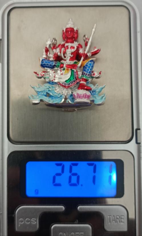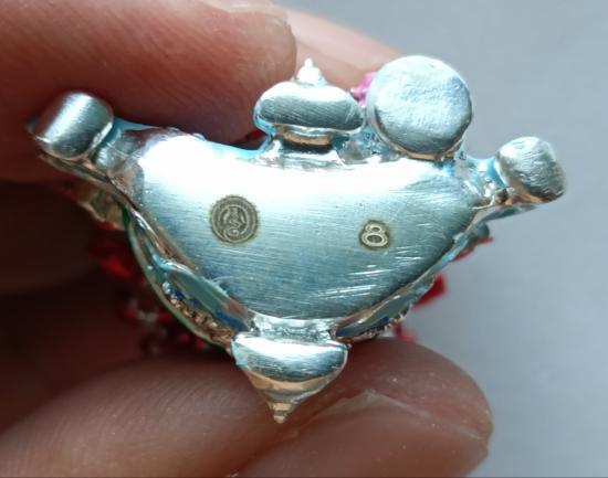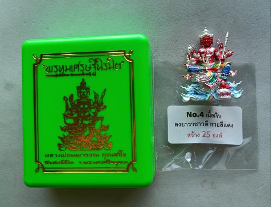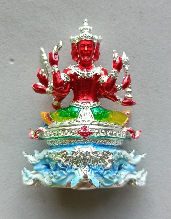 วัดใจเคาะเดียวแดงจ้า รูปหล่อพระพรหมอุดกริ่ง หลวงพ่อนพวรรณ วัดเสนานิมิตร เนื้อเงินลงยาราชาวดีกายแดง หมายเลข8 เคาะเดียวแดงจ้า