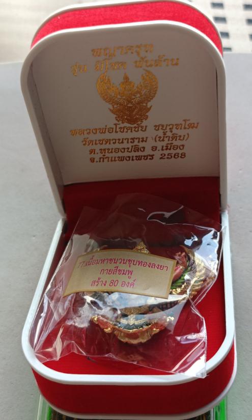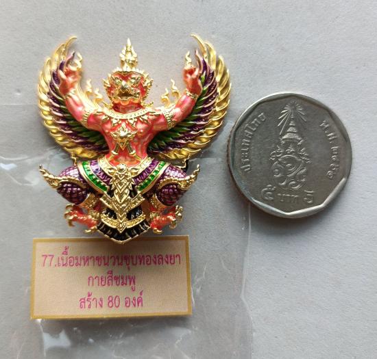 วัดใจเคาะเดียวแดงจ้า พญาครุฑ หลวงพ่อโชคชัย วัดน้ำดิบ เนื้อมหาชนวนชุบทองลงยากายชมพู พิมพ์ใหญ่4เซน เรืองแสง เคาะเดียวแดงจ้า