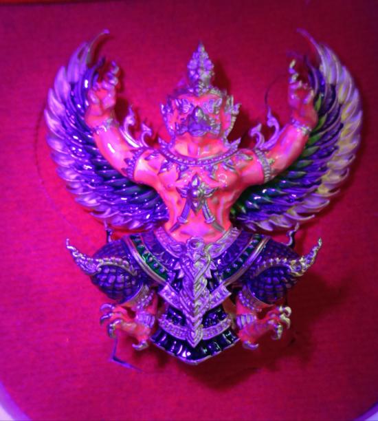 ชื่อพระเครื่อง วัดใจเคาะเดียวแดงจ้า พญาครุฑ หลวงพ่อโชคชัย วัดน้ำดิบ เนื้อมหาชนวนชุบทองลงยากายชมพู พิมพ์ใหญ่4เซน เรืองแสง เคาะเดียวแดงจ้า