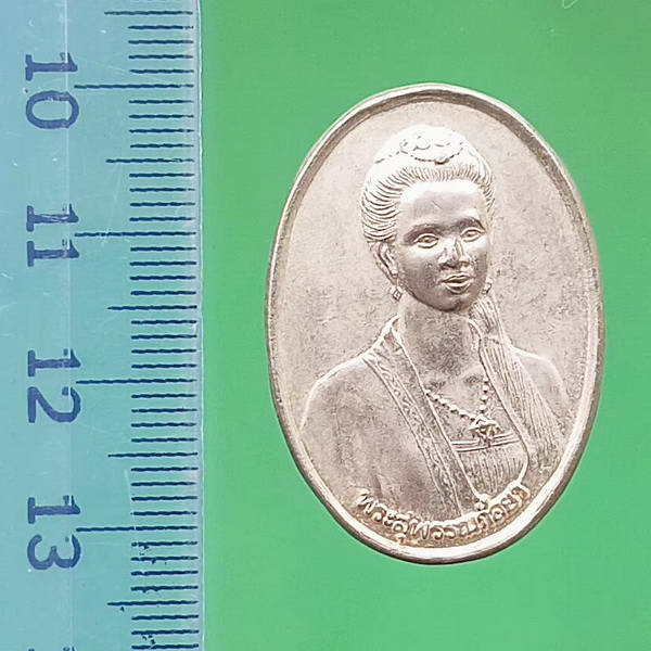 เหรียญพระสุพรรณกัลยา หลังพระบรมรูปพระสุพรรณกัลยา พระนเรศวร พระเอกาทศรถ เนื้อกะไหล่เงิน ปี 2541 อ.สามชุก วัดลาดสิงห์ จ.สุพรรณบุรี