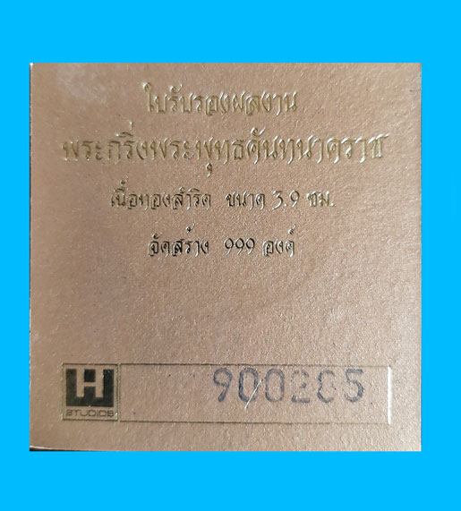พระกริ่งพระพุทธคันทนาคราช เนื้อทองสำริด ขนาด 3.9 ซม. สร้าง 999 องค์ หมายเลข 285 พร้อมกล่องเดิม