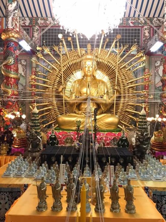 พระโพธิสัตว์อวโลกิเตศวร เจ้าแม่กวนอิม ปางพันมือ สำนักเตาปูน ชลบุรี ครบชุด 3 เนื้อ กะไหล่ทอง กะไหล่เงิน รมดำ