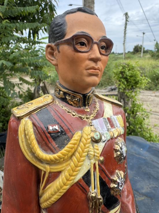 พระบรมรูปหล่อในหลวงรัชกาลที่9 พระบาทสมเด็จพระปรมินทรมหาภูมิพลอดุลยเดช ทรงยืนฉลองพระองค์ชุดทหารมหาดเล็ก(องค์ใหญ่) สูง 22 นิ้ว เนื้อเซรามิก จัดสร้างเนื่องในวาระพระราชพิธีสมโภชกรุงรัตนโกสินทร์ 200 ปี พ. |