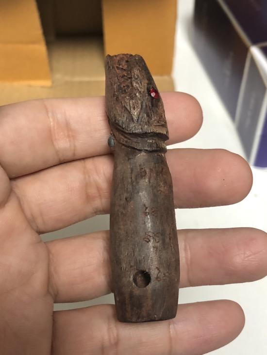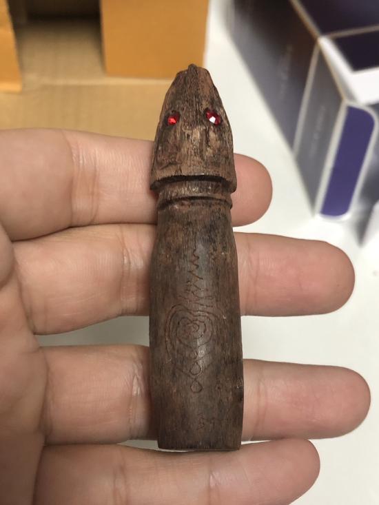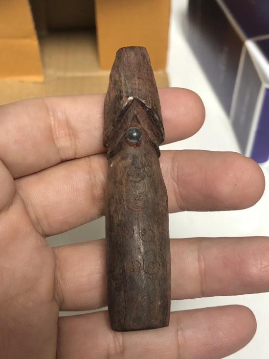 วัดใจ ปลัดหัวชะมด กฐิน๖๔ จารมือโดยพระอาจารย์เป้ วัดเขาแก้ว ลูกศิษย์หลวงพ่อเอิบ วัดซุ้มกระต่าย ไม้มงคล ตาฝังพลอย ตอกโค้ด วซต. ขนาดประมาณ ๓ นิ้ว ปลุกเสกหลายวาระโดยหลายเกจิดัง