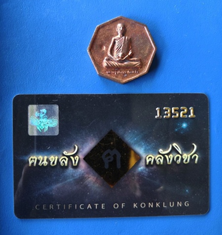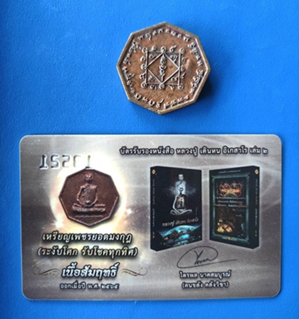 เหรียญสมนาคุณเนื้อสัมฤทธิ์ (เหรียญหล่อหลวงปู่ เดินหน อิเกสาโร รุ่นแรก เพชรยอดมงกุฎ (ระงับโศก รับโชคทุกทิศ) พร้อมบัตรรับรองหนังสือ หลวงปู่ เดินหน อิเกสาโร เล่ม 2 หมายเลข 13521 |