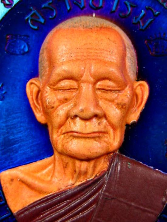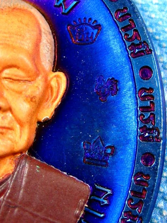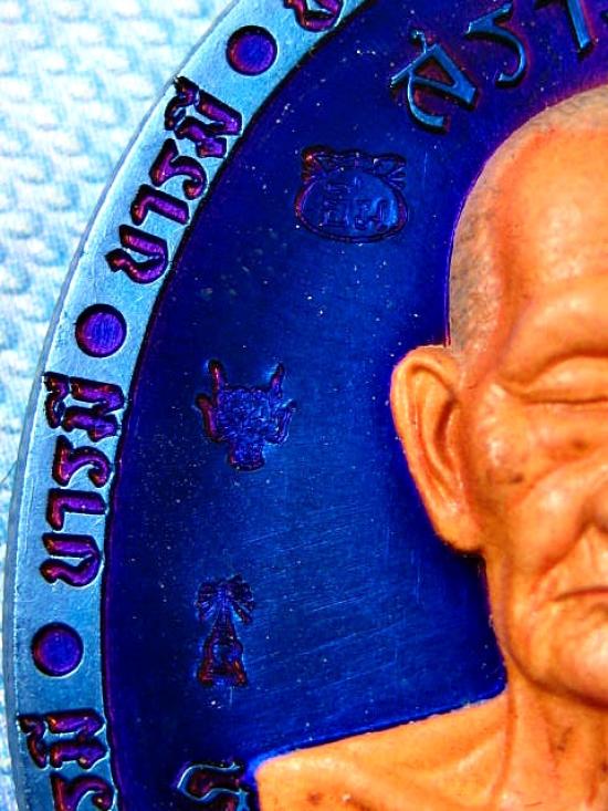 เหรียญรุ่นรวยสร้างบารมี เนื้อบลูโรเดี่ยม หน้ากากเพ้นท์ ตอกรวมโค๊ต หลวงปู่บุญมา โชติธมโม สำนักสงฆ์เขาแก้วทอง (---A66---)