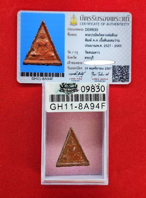 พระปรมัตถ์ A-A หลวงพ่อผินะ วัดสนมลาว ปี2527-2545 พร้อมบัตรรับรองสมาคม