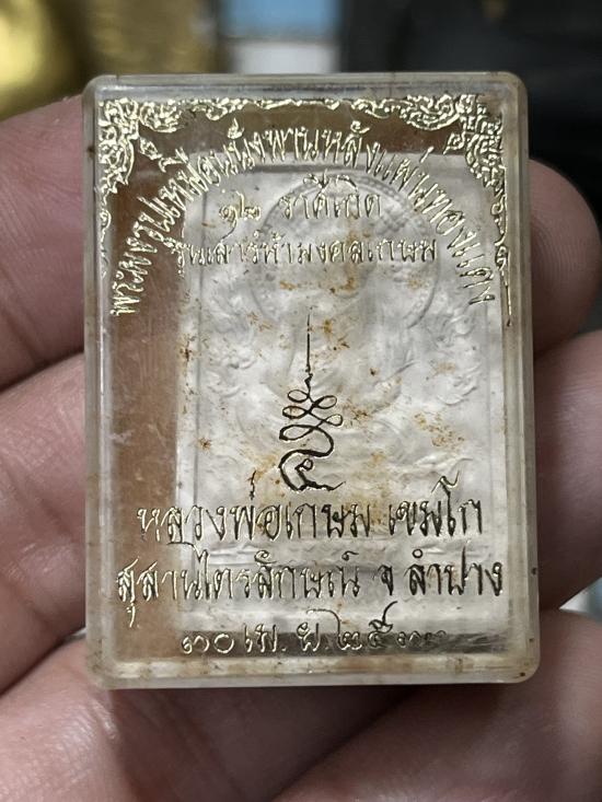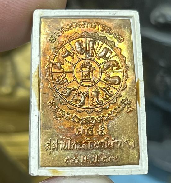 พระผงรูปเหมือนนั่งพาน หลังแผ่นทองแดง 12นักษัตร หลวงพ่อเกษม ปี2537 พร้อมกล่อง สภาพสวย