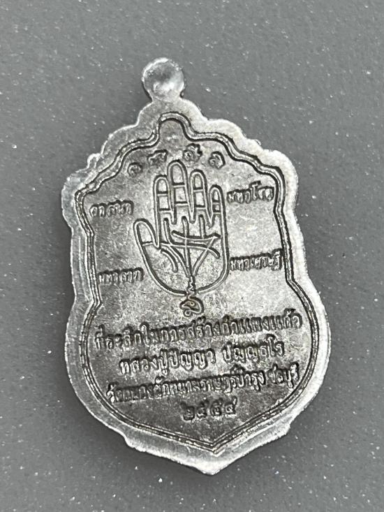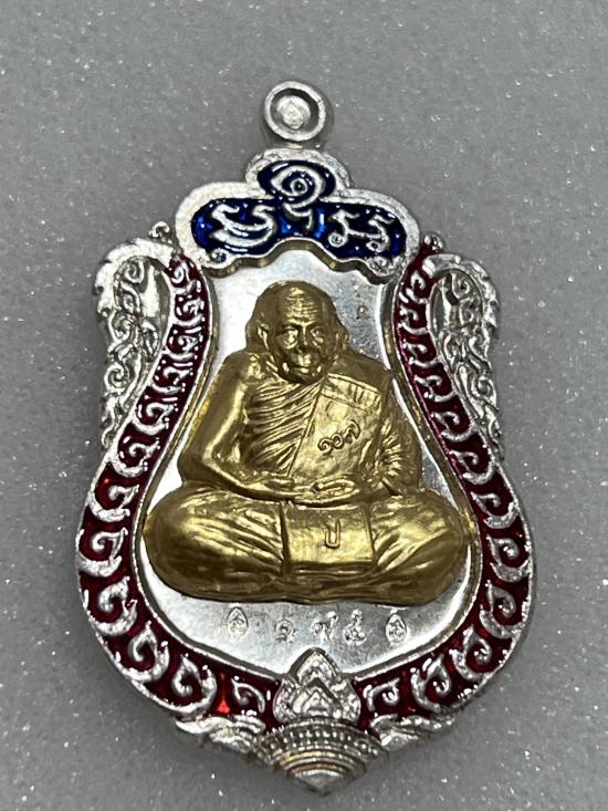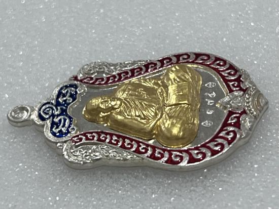 เหรียญเสมามหาเศรษฐี หลังลายมือ เนื้อเงินลงยา หน้าทองคำ หลวงปู่ปัญญา วัดหนองผักหนาม