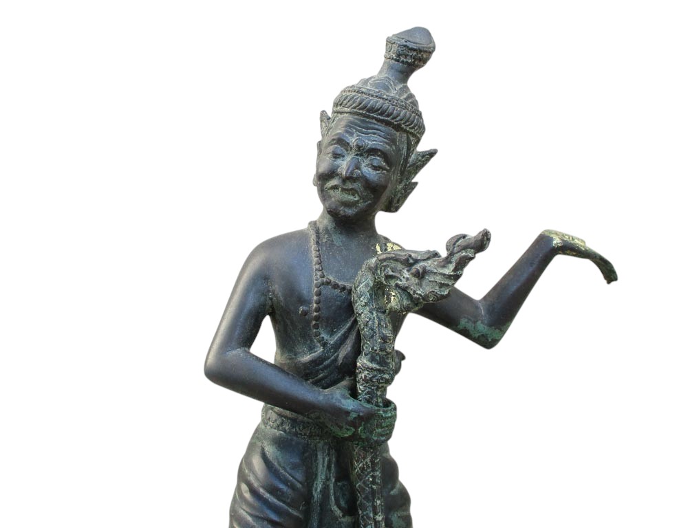 พระฤาษีเพชรฉลูกรรณ์ ปางเสมอเถรรุ่นแรก หลวงพ่อชู วัดทัพชุมพล จ.นครสวรรค์ ทีระลึกไหว้ครู พ.ศ.2555 เนื้อโลหะผิวหิ้ง ตอกโค๊ต ตอกเลข สูงรวม 12 นิ้ว ไม้เท้าถอดได้ !!