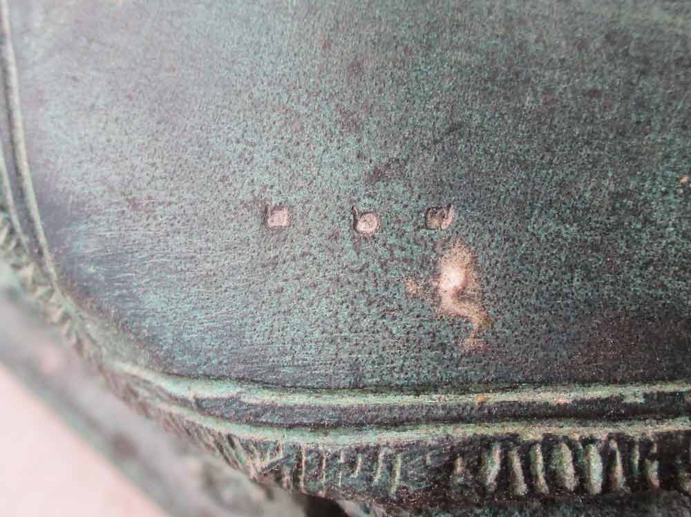 ภาพใต้ฐานขนาด 4 นิ้ว X 4 นิ้ว อุดปูน โรยผงแร่ ฝังวัตถุมงคล 5 อย่าง !!