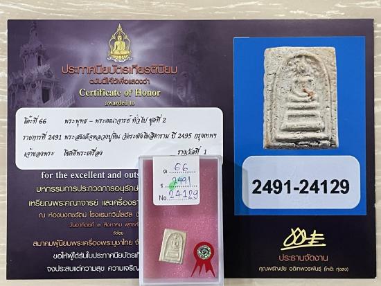 สร้างปี 2495 สภาพสวย สมบูรณ์ ไม่หักไม่ซ่อม รับประกันพระแท้ ดูง่าย ใบประกาศรางวัลที่1งานสมาคม