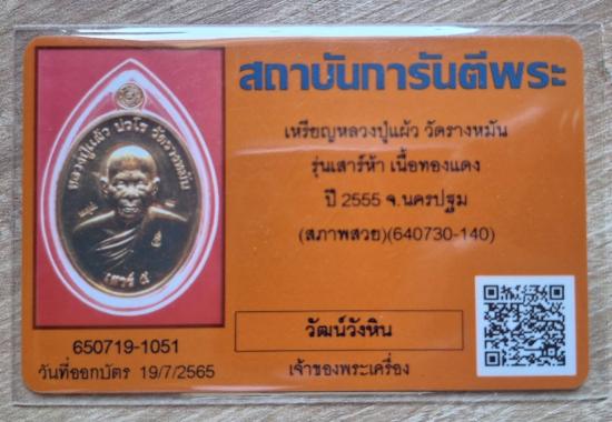 "บัตรสภาพสวย"เหรียญยันต์สวนเสาร์ห้า หลวงปู่แผ้ว ปวโร ปี 55 เนื้อทองแดง พร้อมกล่องเดิมครับ