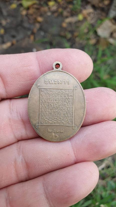 | เหรียญชนะมาร หลวงพ่อเกษม เขมโก ปี 2538 หลังยันต์เกาะเพชร หลวงปู่ศูข |