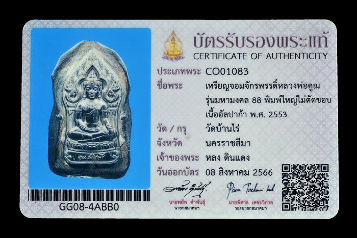 เหรียญจอมจักรพรรดิ์ ( พิมพ์ใหญ่ 3.5 ซ.ม. ) รุ่น พิเศษ คูณสุดยอด มหามงคล 88 ( เนื้ออัลปาก้า ไม่ตัดปีก หมายเลข 13 กรรมการ ) พ.ศ.2553 ( จัดสร้าง 19 องค์ , บัตรสมาคมผู้นิยมพระเครื่อง )