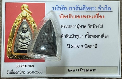 หลวงปู่ทวด วัดช้างให้ พิมพ์กลีบบัวรุ่น 1 เนื้อทองเหลืองปี 2507 พระสวยผิวแห้งๆ (**** ไม่มีกรอบทอง**** )
