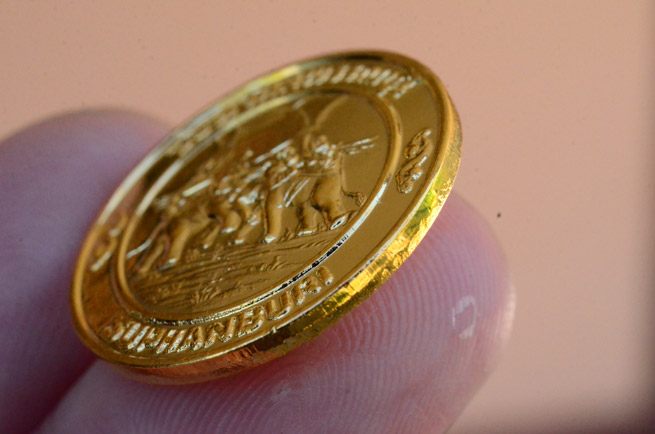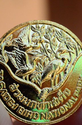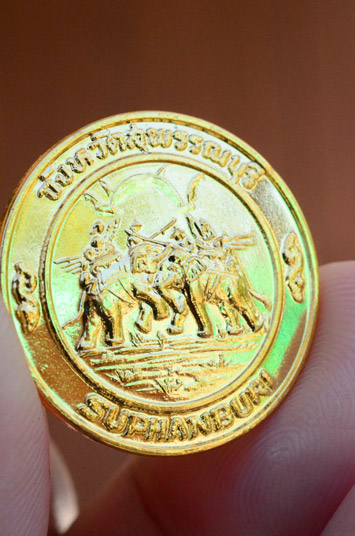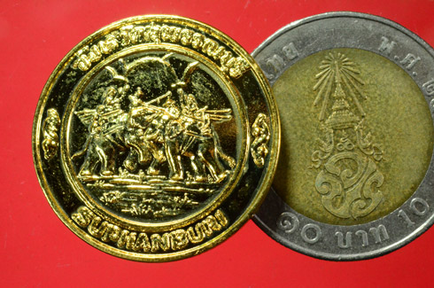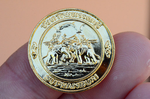 เหรียญชนช้าง สวนนกท่าเสด็จ ที่ระลึกประจำจังหวัดสุพรรณบุรี เนื้อทองแดงกะไหล่ทอง สวยครับ