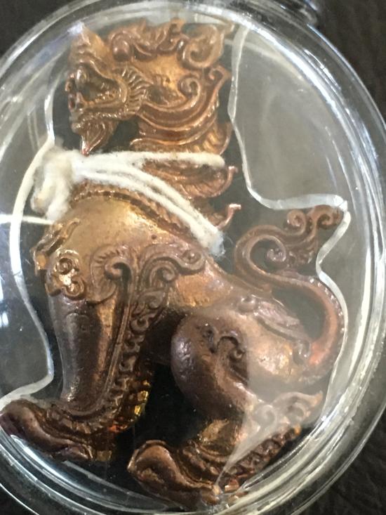 เป็นสีหราชตำราไทยใหญ่ เชื่อว่าเป็นราชาแห่งสัตว์ และมนุษย์ เป็นใหญ่ในโลก เพราะเหยียบโลกไว้ใต้อุ้งเท้า เหยียบทวีปไว้ทั้ง 4 ทวีป วัดทางภาคเหนือ จึงนิยมสร้างสิงห์คู่ยืนเฝ้าประตูวัด คอยพิทักษ์วัด จับวิญญาณชั่วร้ายกิน ปราบปรามสิ่งไม่ดีทั้งหลาย สมัยครูบาออเป็นนักรบไทยใหญ่ช่วงสงครามโลกครั้ง 2 ท่านลงยันต์กลางหลังเพื่อนทหารด้วยยันต์สิงห์ปราบป่า พญาปราบเมือง ปรากฏว่าเพื่อนท่านทั้งกองร้อย รบเก่ง ศัตรูกลัว รบที่ไหนชนะที่นั่น สร้างความคร้ามเกรงในอำนาจตบะเดชะไปทั่ว เพื่อนท่านเดี๋ยวนี้ แม้แก่ชรา ก็ยังมีอำนาจ ตบะเดชะอันเกิดจากยันต์สิงห์ปราบป่าของครูบาออ ได้เป็นนายพล นายทหารใหญ่ ประจำรัฐไทยใหญ่กันทุกคน พร้อมเลี่ยม พระสวยมากเดิมๆ หายากแล้ว