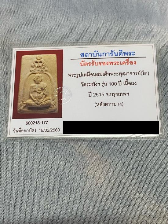 พระรูปเหมือนสมเด็จพระพุฒาจารย์โต วัดระฆังฯ รุ่น100ปี เนื้อผง ปี2515 กรุงเทพฯ (หลังตรายาง)พร้อมบัตรรับรองฯ โอนเงินแล้วแจ้งรายละเอียดการโอนทาง Mailbox ของเวปจี ได้รับแจ้งว่าโอนเงินแล้วจะส่งพระภายใน 3 วันทำการ